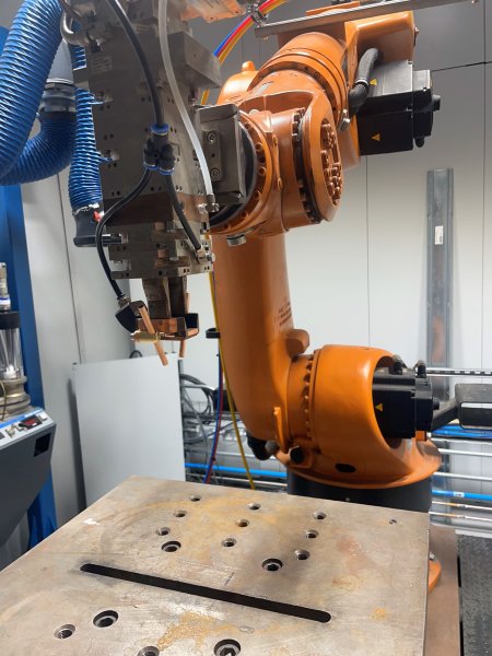 This setup integrates a high-powered 16kW IPG fibre laser into the KUKA robot arm, enabling advanced processing capabilities. The system is compatible with a selection of Precitec laser processing heads for cutting, powder deposition, and welding, making it a robust solution for material processing. Key features include: