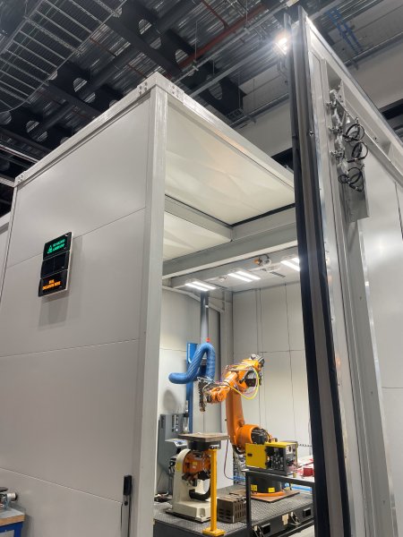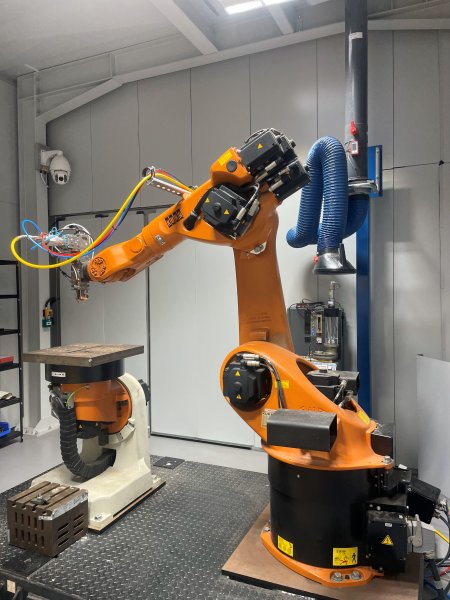 This setup integrates a high-powered 16kW IPG fibre laser into the KUKA robot arm, enabling advanced processing capabilities. The system is compatible with a selection of Precitec laser processing heads for cutting, powder deposition, and welding, making it a robust solution for material processing. Key features include: